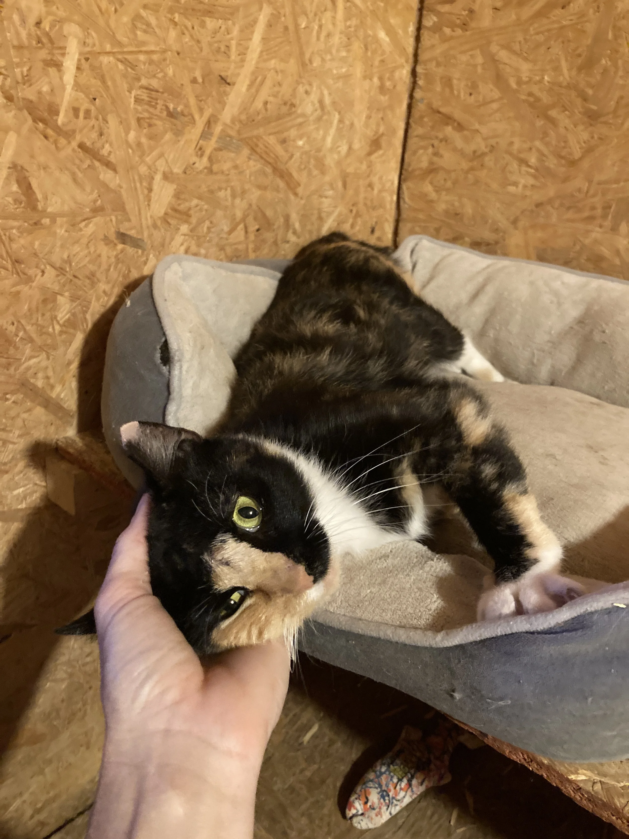 Cricket is a super affectionate, quirky little soul who adores humans and loves being around people. Whether she’s rubbing up against your legs, curling up in your lap, or following you around for pets, Cricket is always eager to share her love. She is vaxxed and spayed and ready to find her forever home.